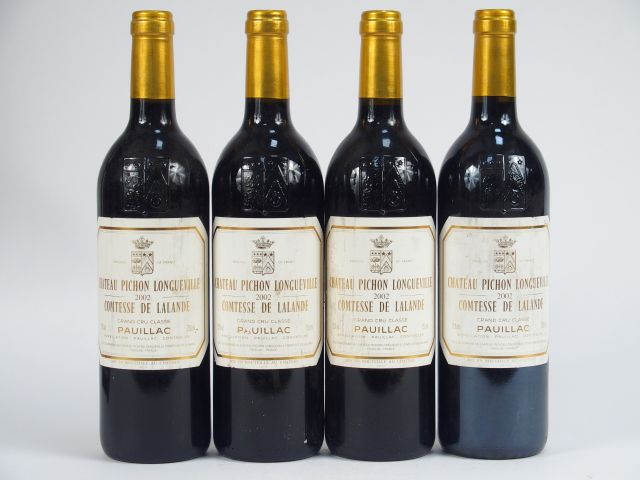 4 BOUTEILLES CHÂTEAU PICHON LONGUEVILLE COMTESSE DE LALANDE GCC PAUILLAC - 2002 - ETLS