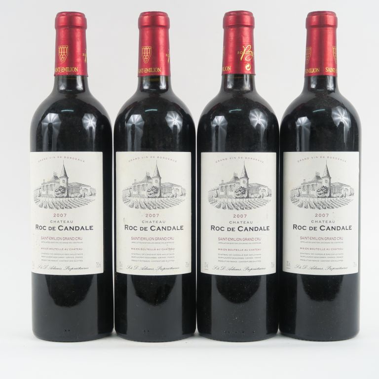 Lot de 4 BOUTEILLES CHÂTEAU ROC DE CANDALE GC ST EMILION - 2007 au prix de 50 à 60 € en vente aux enchères par l'hôtel des ventes Primardeco