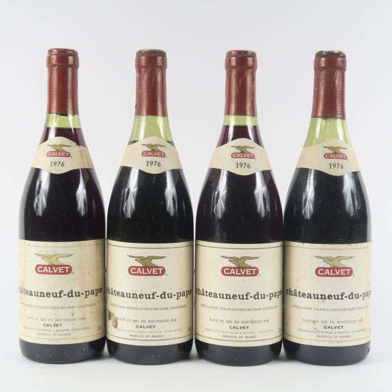 Lot de 4 BOUTEILLES CHÂTEAUNEUF DU PAPE CALVET - 1976 - 1 à 3,5 CM au prix de 40 à 50 € en vente aux enchères par l'hôtel des ventes Primardeco