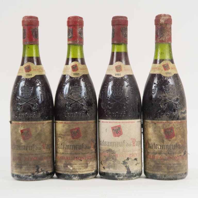 Lot de 4 BOUTEILLES CHÂTEAUNEUF DU PAPE CHÂTEAU MONT REDON - 1985 - BS/EA au prix de 50 à 60 € en vente aux enchères par l'hôtel des ventes Primardeco