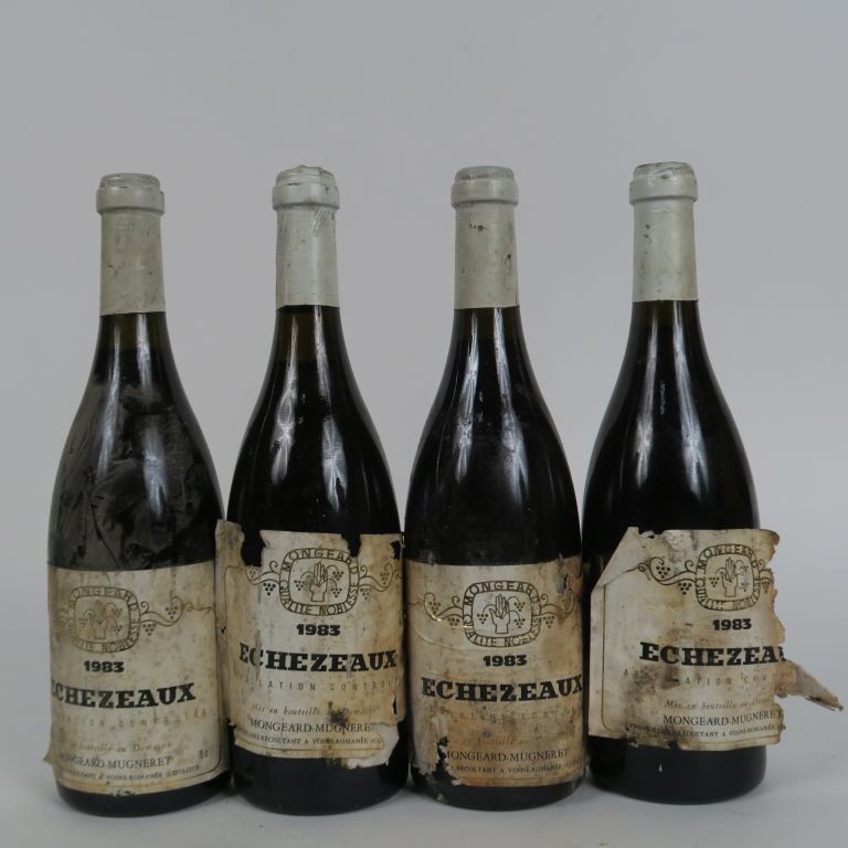 Lot de 4 BOUTEILLES ECHEZEAUX MONGEARD MUGNERET - 1983 - 1 à 2,5 CM/EA au prix de 600 à 700 € en vente aux enchères par l'hôtel des ventes Primardeco