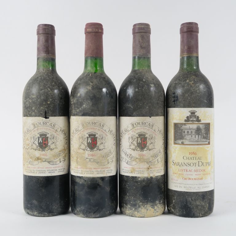 4 BOUTEILLES LISTRAC MEDOC 1986 : 3 CHÂTEAU FOURCAS HOSTEN 1986 BG - 1 CHÂTEAU SARANSOT DUPRE
