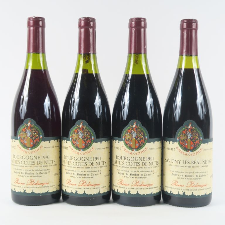 4 BOUTEILLES TASTEVINAGE REINE PÉDAUQUE 1991 : 1 SAVIGNY LES BEAUNE - 3 BOURGOGNE HAUTES CÔTES DE NUITS