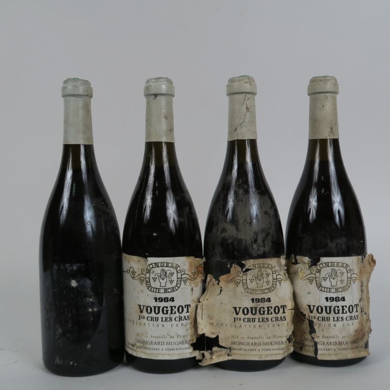 4 BOUTEILLES VOUGEOT 1er CRU 'LES CRAS' MONGEARD MUGNERET - 1984 - 2,5 CM/EA/1 SE