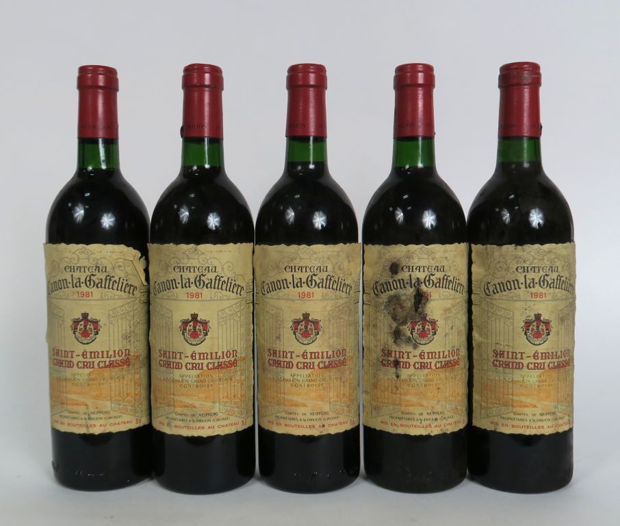 5 BOUTEILLES CHÂTEAU CANON LA GAFELLIERE 1er GCC ST EMILION - 1981 - 1...