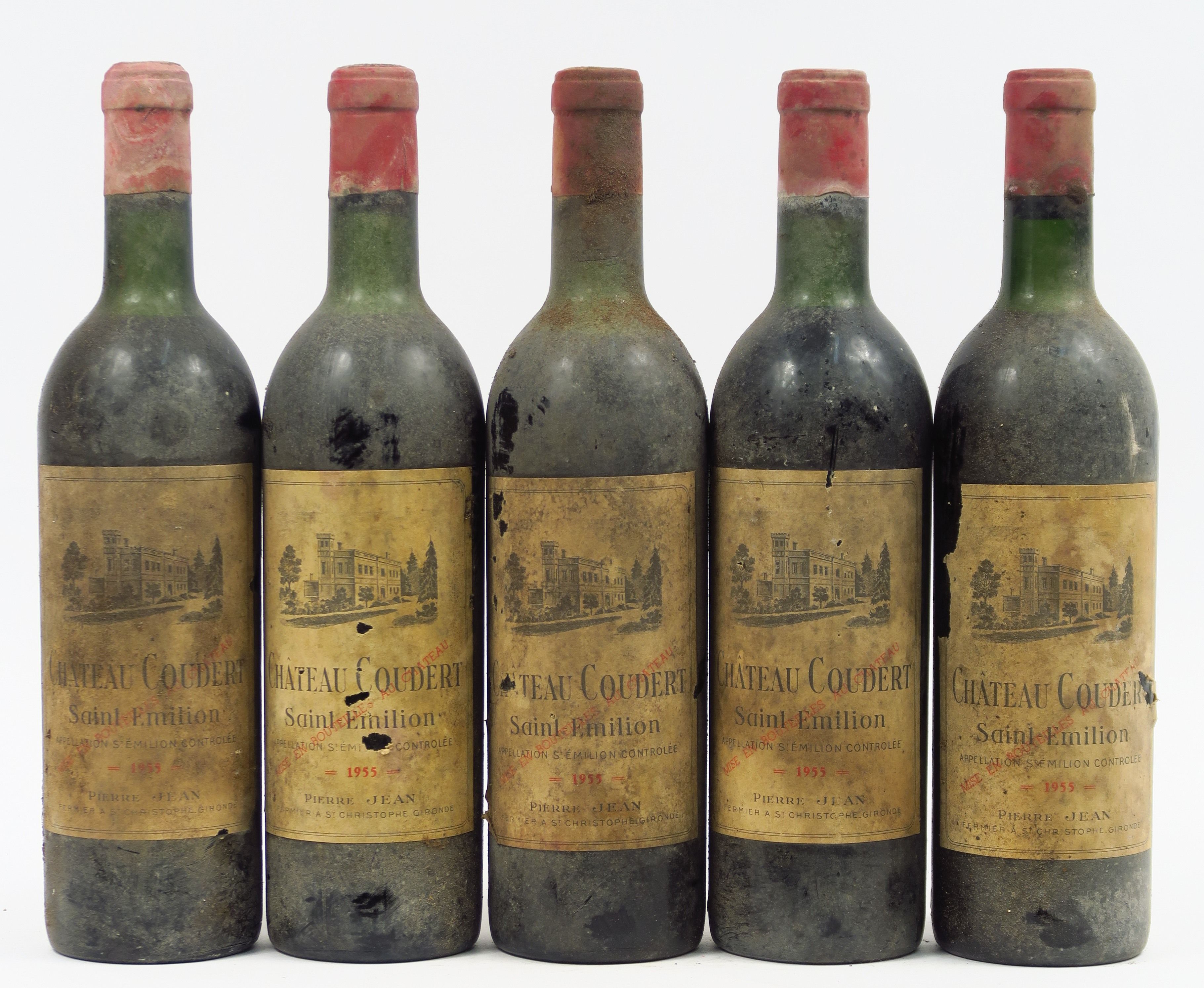 5 BOUTEILLES CHÂTEAU COUDERT ST EMILION - 1955 - 4 LB-HEP/1 MEP/BS/EA/3 CAPS L CORRODEES