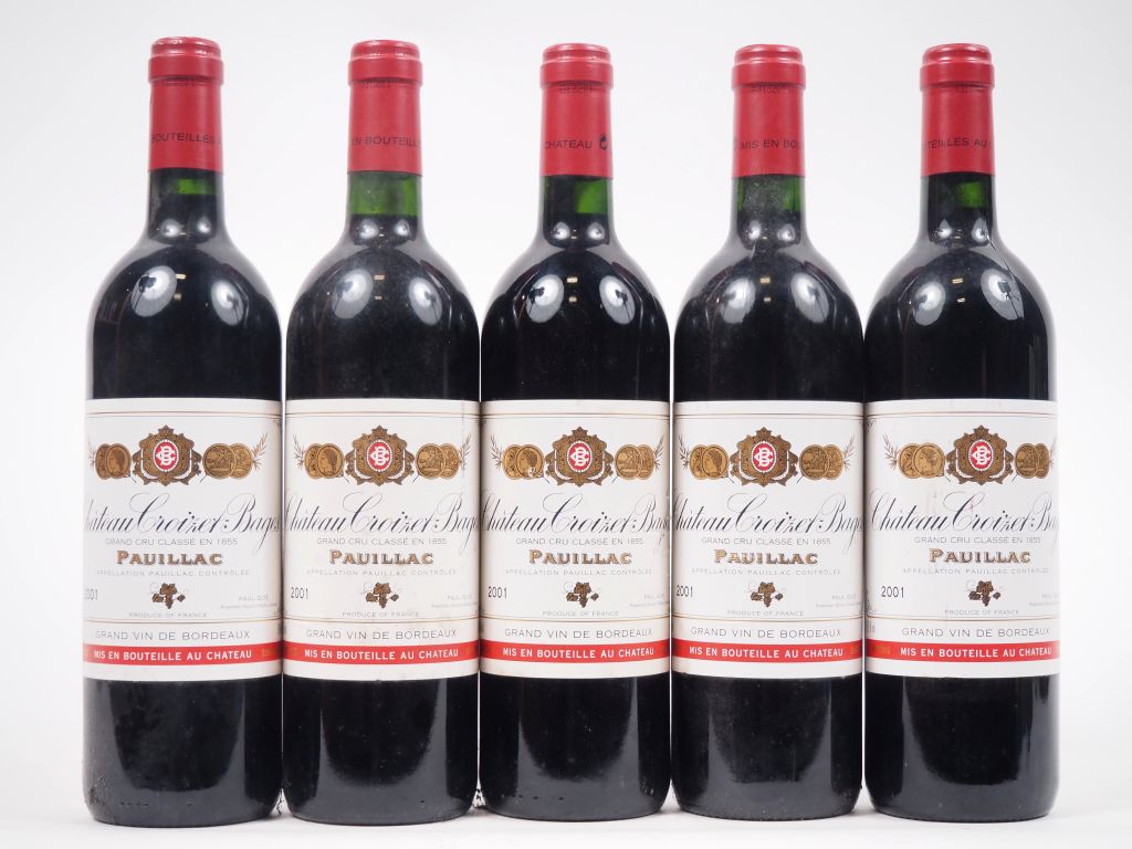 Lot de 5 BOUTEILLES CHÂTEAU CROIZET BAGES GCC PAUILLAC - 2001 au prix de 70 à 100 € en vente aux enchères par l'hôtel des ventes Primardeco