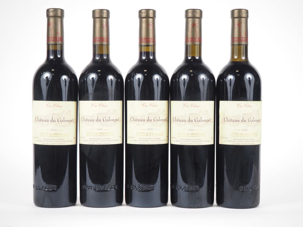 Lot de 5 BOUTEILLES CHÂTEAU DU GALOUPET CÔTES DE PROVENCE - 2000 - 1 BG au prix de 20 à 30 € en vente aux enchères par l'hôtel des ventes Primardeco