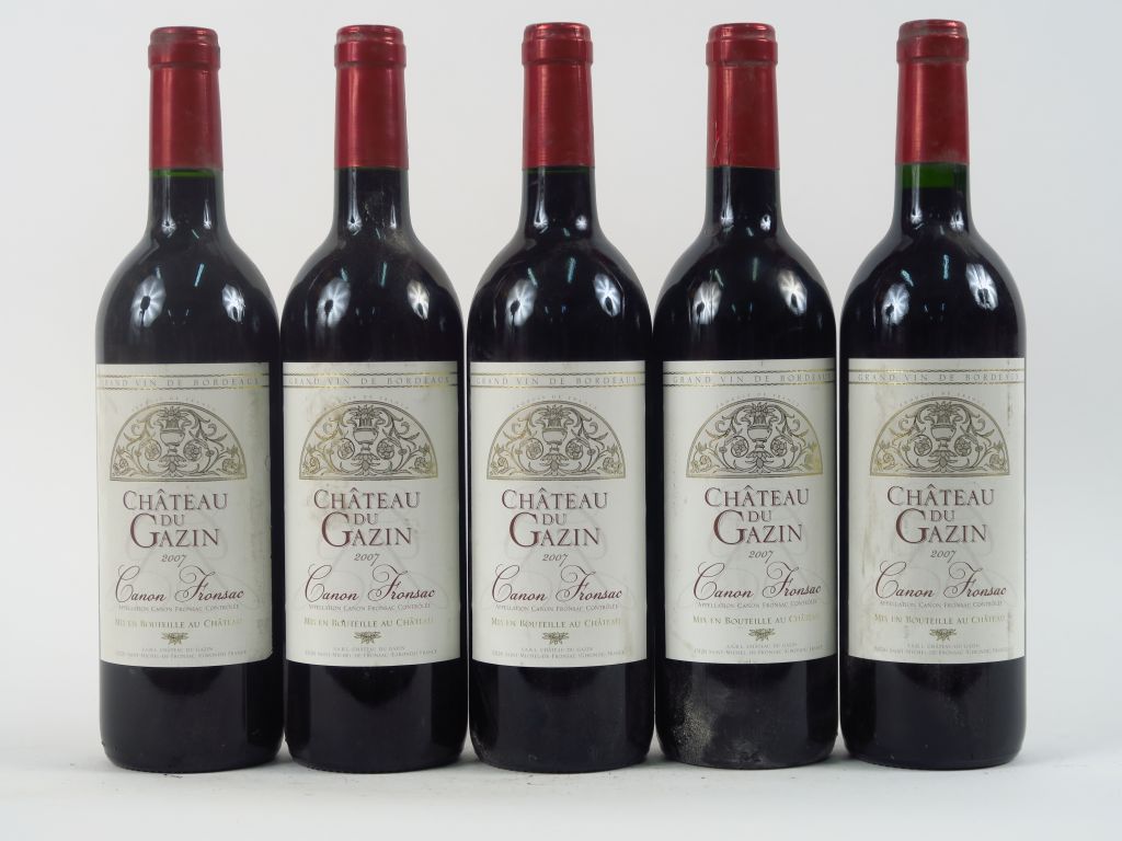 Lot de 5 BOUTEILLES CHÂTEAU DU GAZIN CANON FRONSAC - 2007 au prix de 50 à 60 € en vente aux enchères par l'hôtel des ventes Primardeco