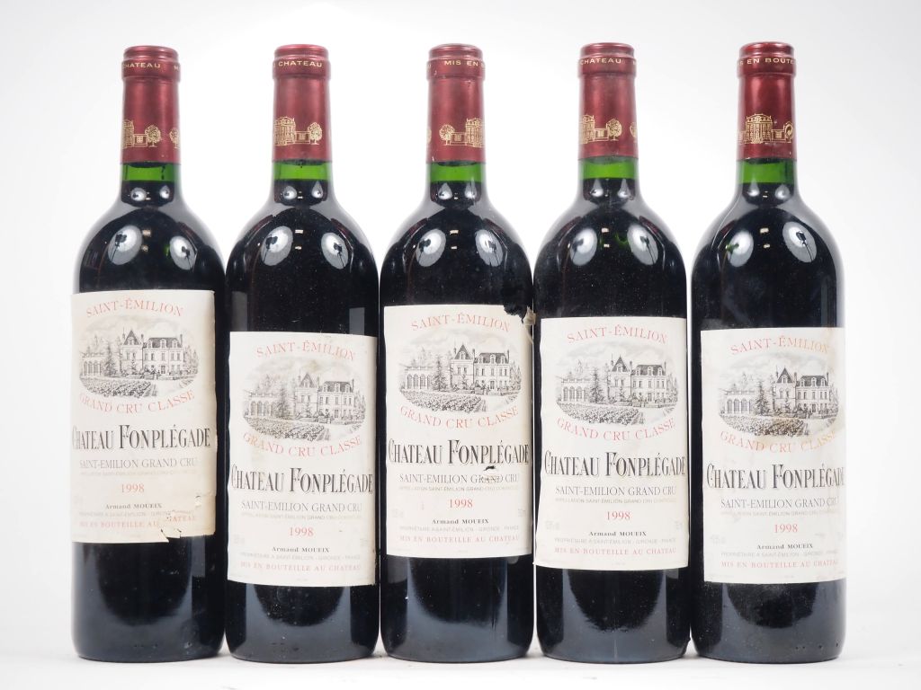 Lot de 5 BOUTEILLES CHÂTEAU FONPLÉGADE GC ST ÉMILION - 1998 au prix de 60 à 70 € en vente aux enchères par l'hôtel des ventes Primardeco