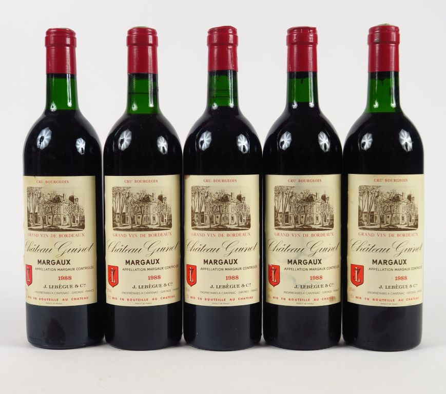 Lot de 5 BOUTEILLES CHÂTEAU GUINOT CB MARGAUX - 1988 - BG au prix de 50 à 60 € en vente aux enchères par l'hôtel des ventes Primardeco