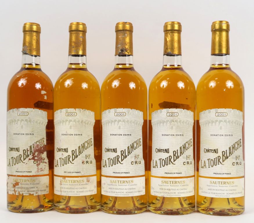 5 BOUTEILLES CHÂTEAU LA TOUR BLANCHE 1er CC SAUTERNES - 2001 - 1 ELA