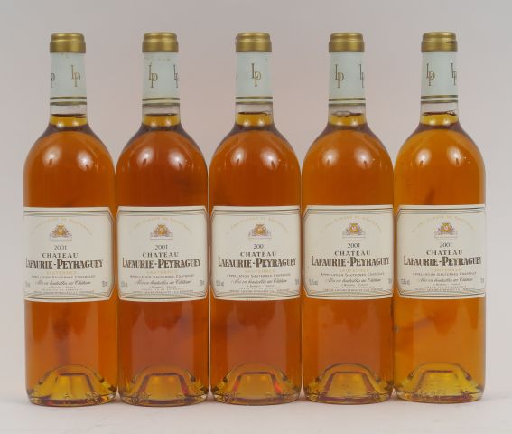 Lot de 5 BOUTEILLES CHÂTEAU LAFAURIE PEYRAGUEY 1er CC SAUTERNES - 2001 au prix de 180 à 200 € en vente aux enchères par l'hôtel des ventes Primardeco