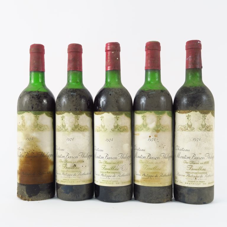 5 BOUTEILLES CHÂTEAU MOUTON BARON PHILIPPE GCC PAUILLAC - 1974 - 3 HEP/2 MEP/ET