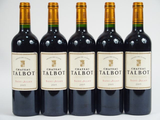 Lot de 5 BOUTEILLES CHÂTEAU TALBOT GCC ST JULIEN - 2005 au prix de 230 à 250 € en vente aux enchères par l'hôtel des ventes Primardeco