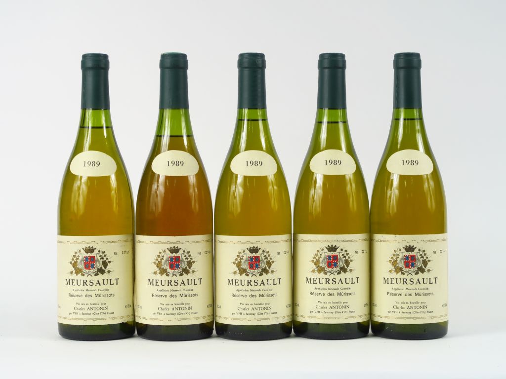Lot de 5 BOUTEILLES MEURSAULT 'RESERVE DES MURISSOTS' CH. ANTONIN - 1989 au prix de 120 à 140 € en vente aux enchères par l'hôtel des ventes Primardeco