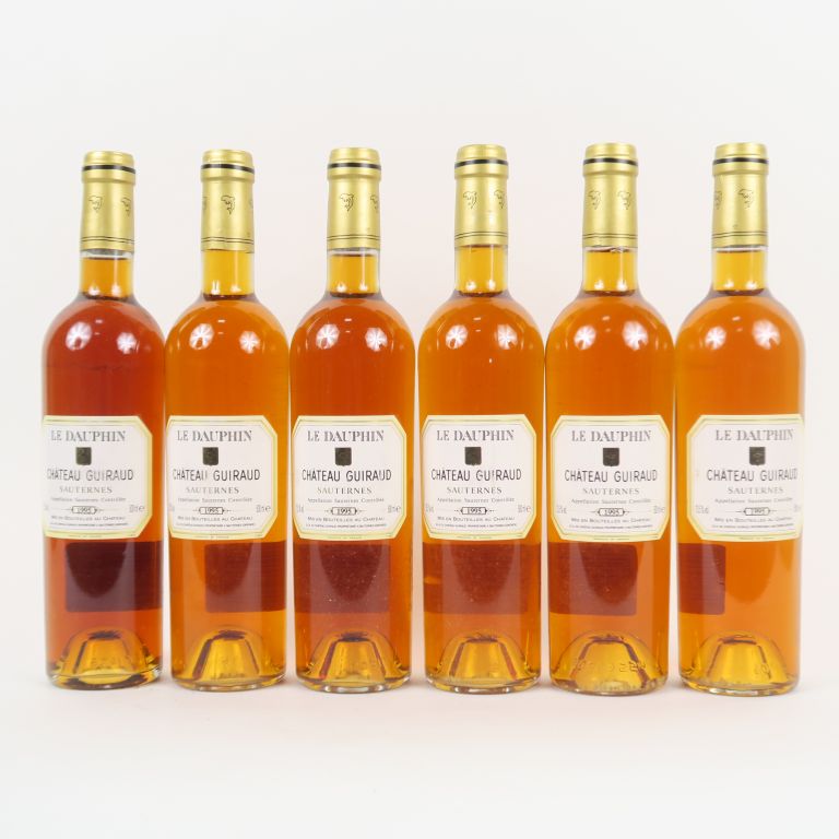 Lot de 6 BOUTEILLES (50 CL) LE DAUPHIN CHÂTEAU GUIRAUD - 1985 - CBO au prix de 30 à 40 € en vente aux enchères par l'hôtel des ventes Primardeco