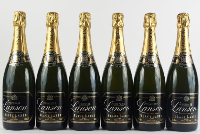 Lot de 6 BOUTEILLES CHAMPAGNE LANSON BLACK LABEL BRUT au prix de 60 à 80 € en vente aux enchères par l'hôtel des ventes Primardeco