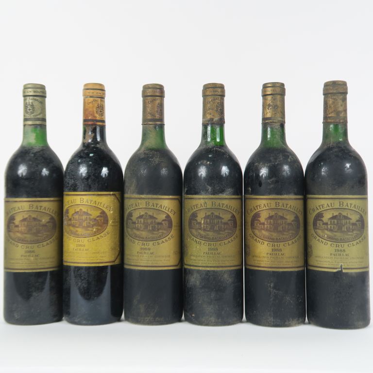Lot de 6 BOUTEILLES CHÂTEAU BATAILLEY GCC PAUILLAC - 1988 - LB/BS au prix de 40 à 50 € en vente aux enchères par l'hôtel des ventes Primardeco