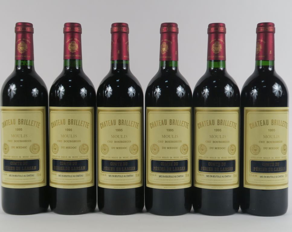 Lot de 6 BOUTEILLES CHÂTEAU BRILLETTE CB MOULIS - 1995 - CBO au prix de 45 à 55 € en vente aux enchères par l'hôtel des ventes Primardeco