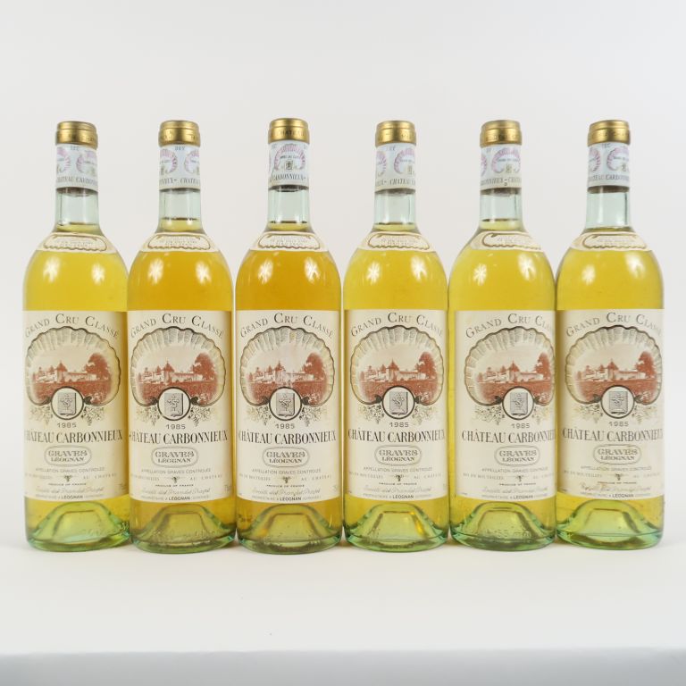 Lot de 6 BOUTEILLES CHÂTEAU CARBONNIEUX GCC GRAVES - 1985 - BG au prix de 100 à 120 € en vente aux enchères par l'hôtel des ventes Primardeco