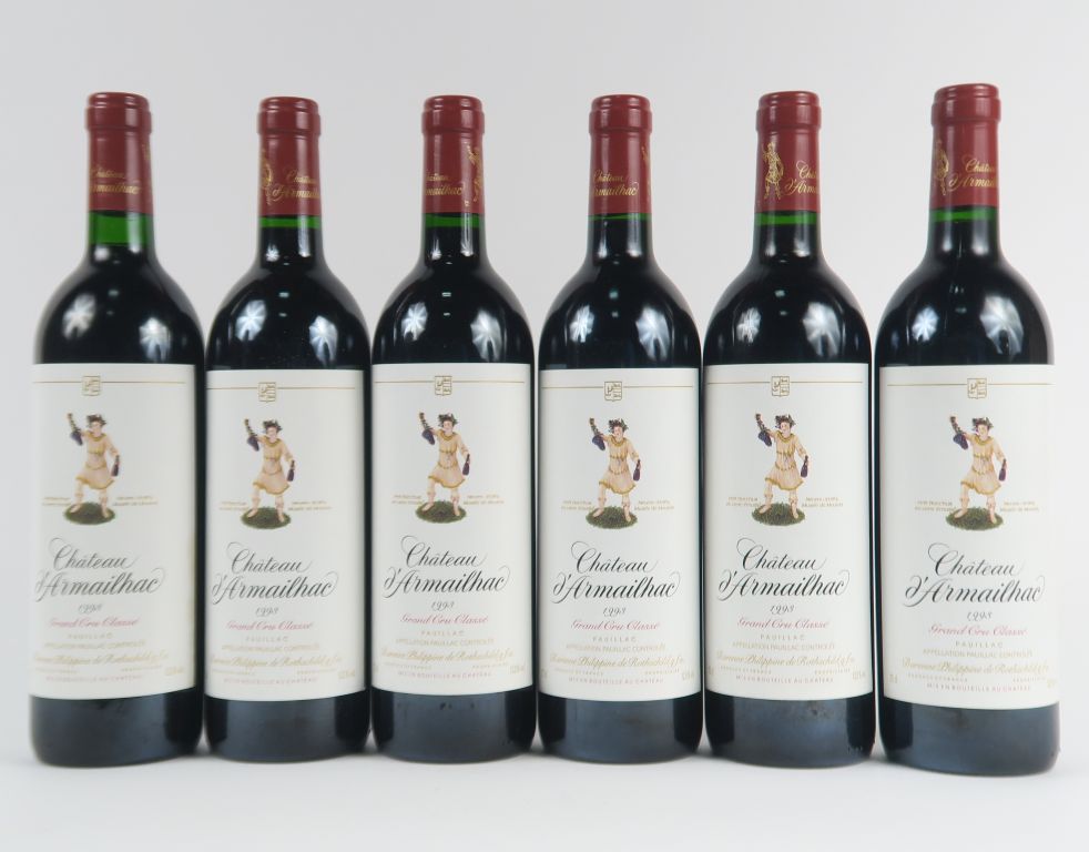 Lot de 6 BOUTEILLES CHÂTEAU D'ARMAILHAC GCC PAUILLAC - 1993 - CBO au prix de 120 à 150 € en vente aux enchères par l'hôtel des ventes Primardeco
