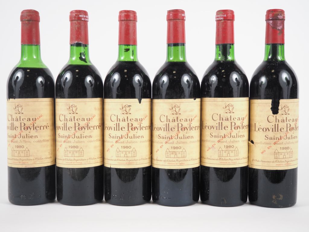 6 BOUTEILLES CHÂTEAU LÉOVILLE POYFERRÉ GCC ST JULIEN - 1980 - 3 BG/1 LB-HEP/1 HEP/1 CAPSULE LÉGER CORRODÉE/ELA