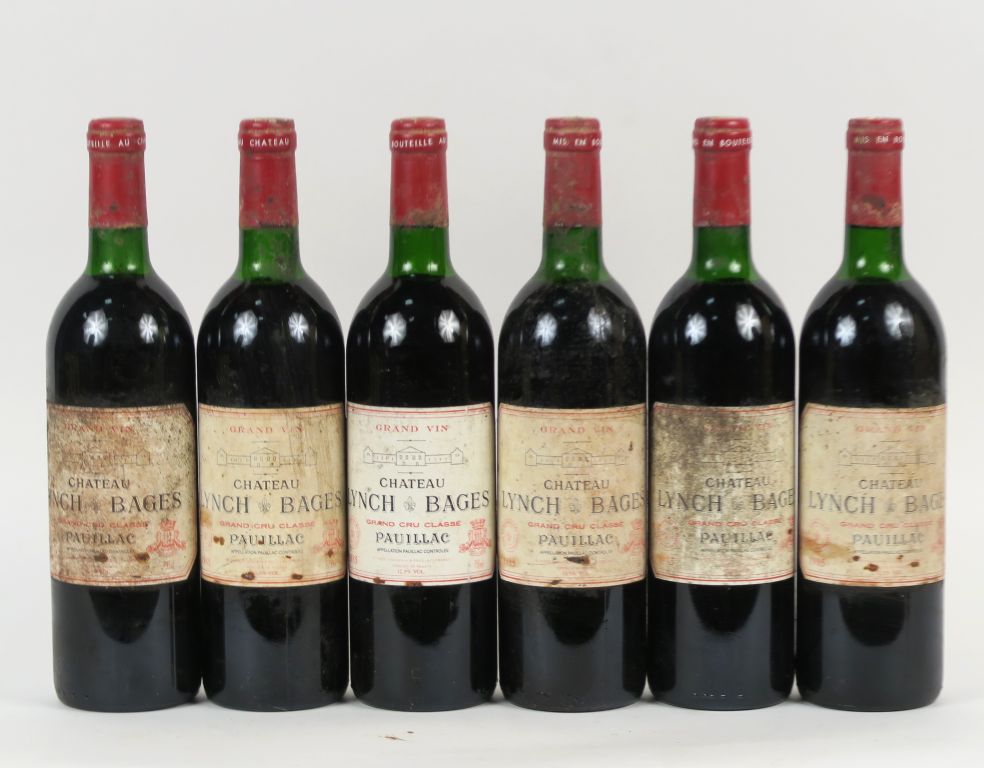 6 BOUTEILLES CHÂTEAU LYNCH BAGES GCC PAUILLAC - 1985 - 3 LB/2 LB-HEP/1 HEP/ET/CAPS CORRODÉES