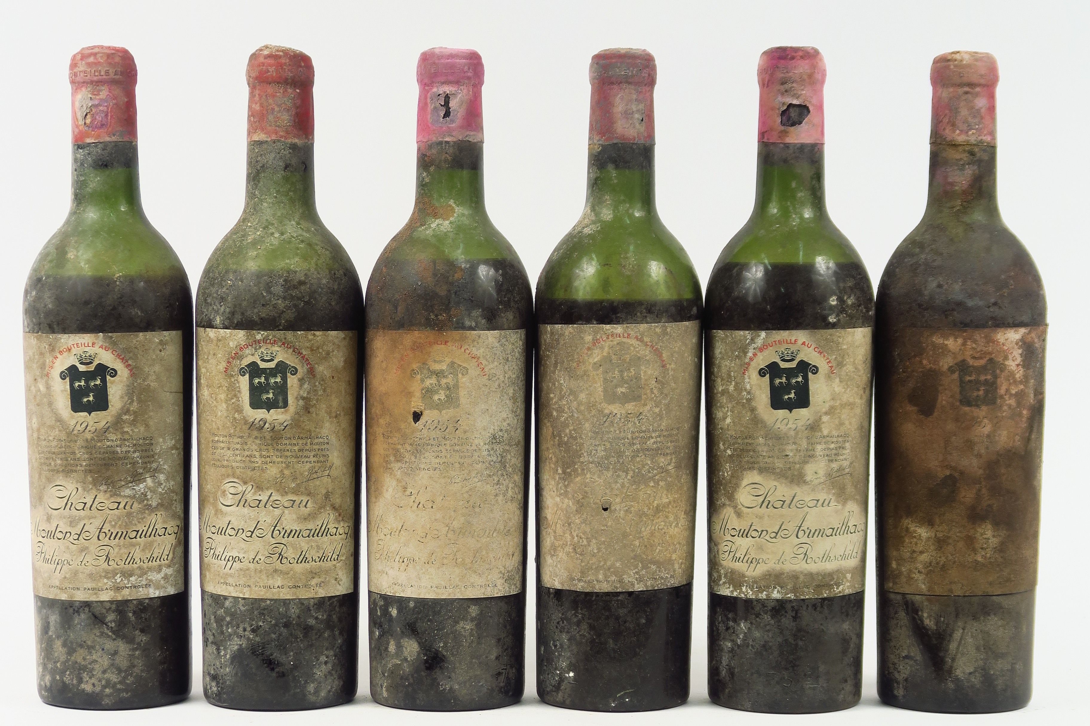 6 BOUTEILLES CHÂTEAU MOUTON D'ARMAILHACQ GCC PAUILLAC - 1954 - BEP/EA/BS/CAPS CORRODEE