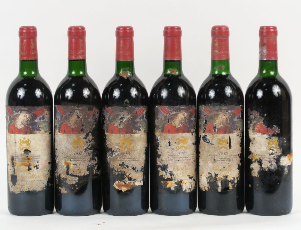 6 BOUTEILLES CHÂTEAU MOUTON ROTHSCHILD 1er GCC PAUILLAC - 1985 - 4 BG/2 LB/ETA/1 CAPS AB