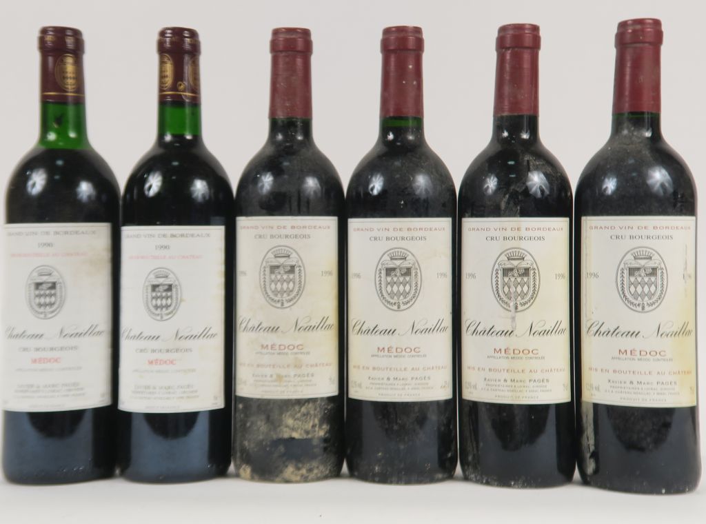 Lot de 6 BOUTEILLES CHÂTEAU NOAILLAC CB MEDOC - 2 de 1990 - 4 de 1996 au prix de 30 à 40 € en vente aux enchères par l'hôtel des ventes Primardeco