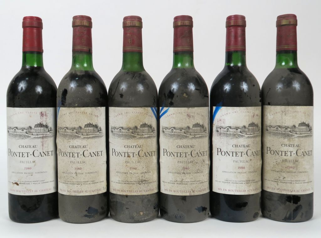 Lot de 6 BOUTEILLES CHÂTEAU PONTET CANET GCC PAUILLAC - 1980 - 3 BG/3LB/ES/3E au prix de 180 à 220 € en vente aux enchères par l'hôtel des ventes Primardeco