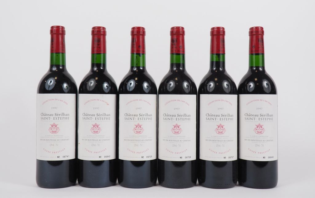 Lot de 6 BOUTEILLES CHÂTEAU SERILHAN "CUVÉE PRESTIGE" ST ESTÈPHE - 1997 au prix de 30 à 40 € en vente aux enchères par l'hôtel des ventes Primardeco