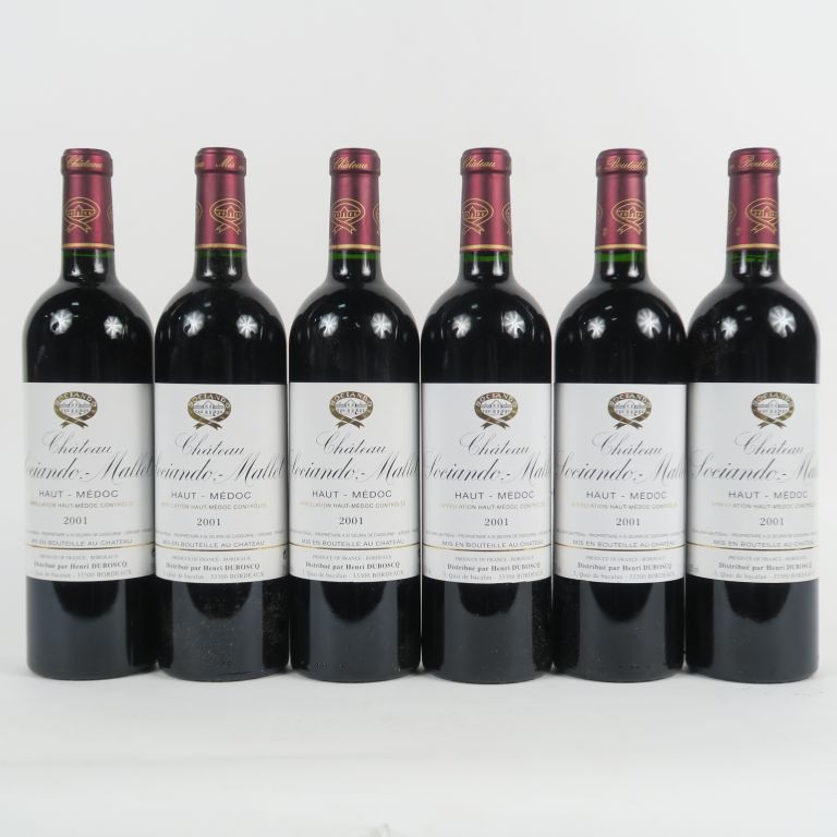Lot de 6 BOUTEILLES CHÂTEAU SOCIANDO MALLET HAUT MEDOC - 2001 au prix de 160 à 180 € en vente aux enchères par l'hôtel des ventes Primardeco