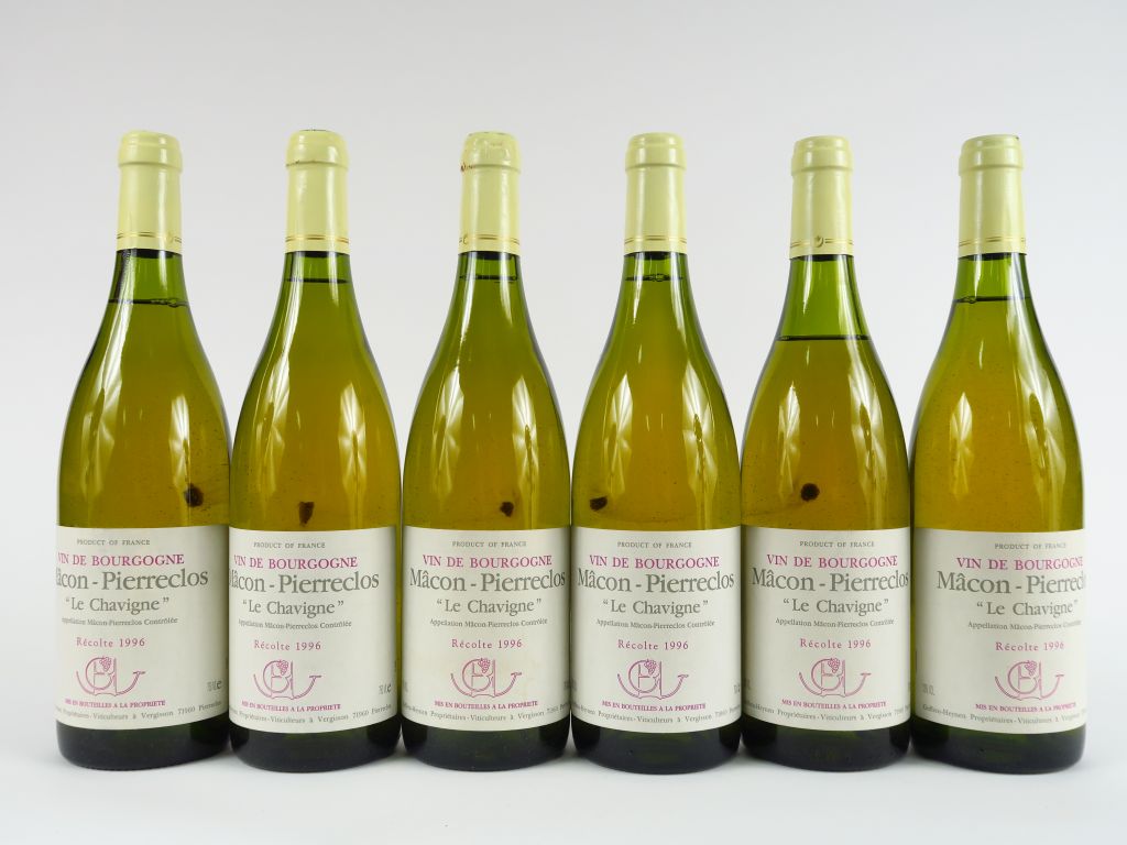Lot de 6 BOUTEILLES MACON-PIERRECLOS 'LE CHAVIGNE' GUFFENS HEYNEN - 1996 au prix de 80 à 100 € en vente aux enchères par l'hôtel des ventes Primardeco