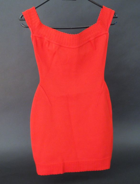 ALAÏA Mini robe rouge à encolure américaine et fines bretelles. Tissu synthétique. Taille S.