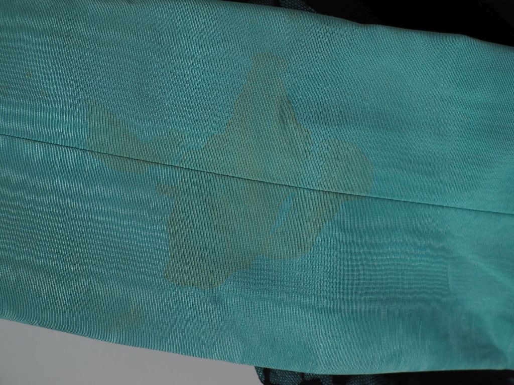 ALIMIA, Paris - Genève, Ensemble de tailleur, veste et jupe, vert d'eau et noir agrémenté de dentelle. Veste à col ouvrant par cinq boutons. Jupe courte, fermeture à l'arrière par zip et bouton. Taille présumée. 36/38 (tâches, manque l'étiquette de la jupe)