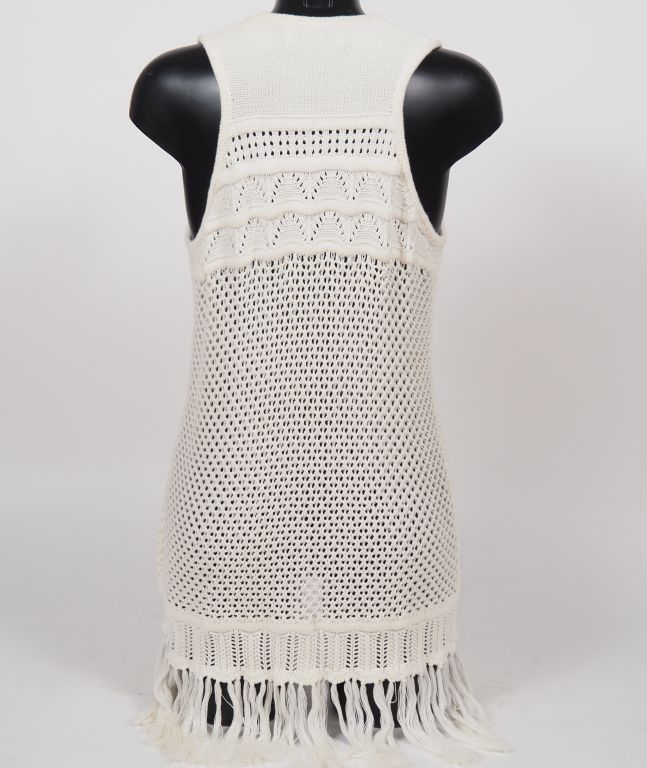 ALLUDE Pull sans manche en coton tricoté à franges. Taille présumée. 40
