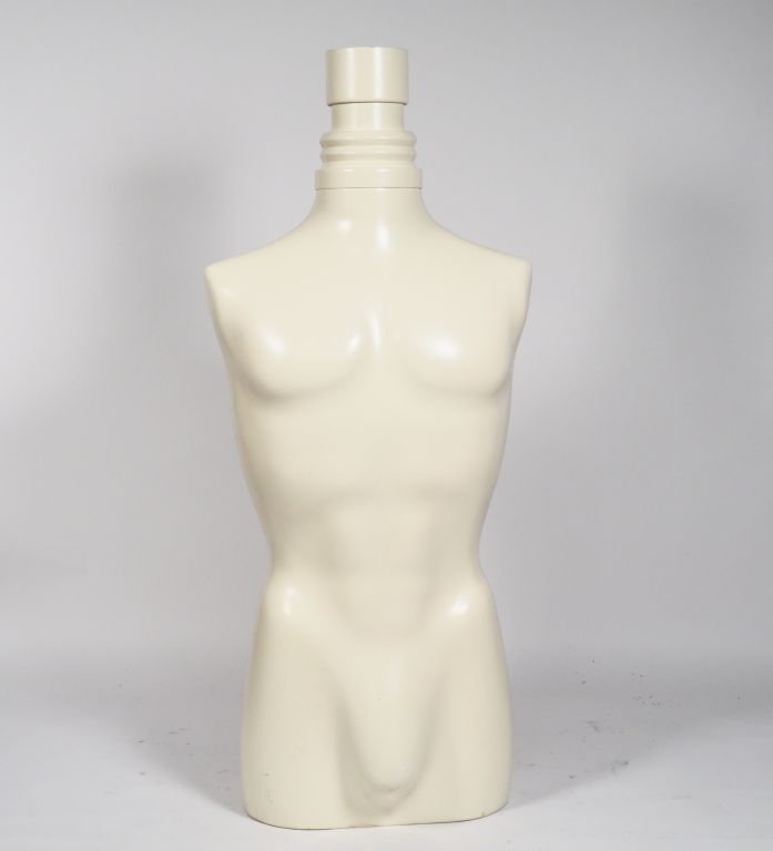 Buste publicitaire Jean-Paul Gaultier figurant le flacon de parfum "Le Male". H. 166 cm (petits chocs et rayures)
