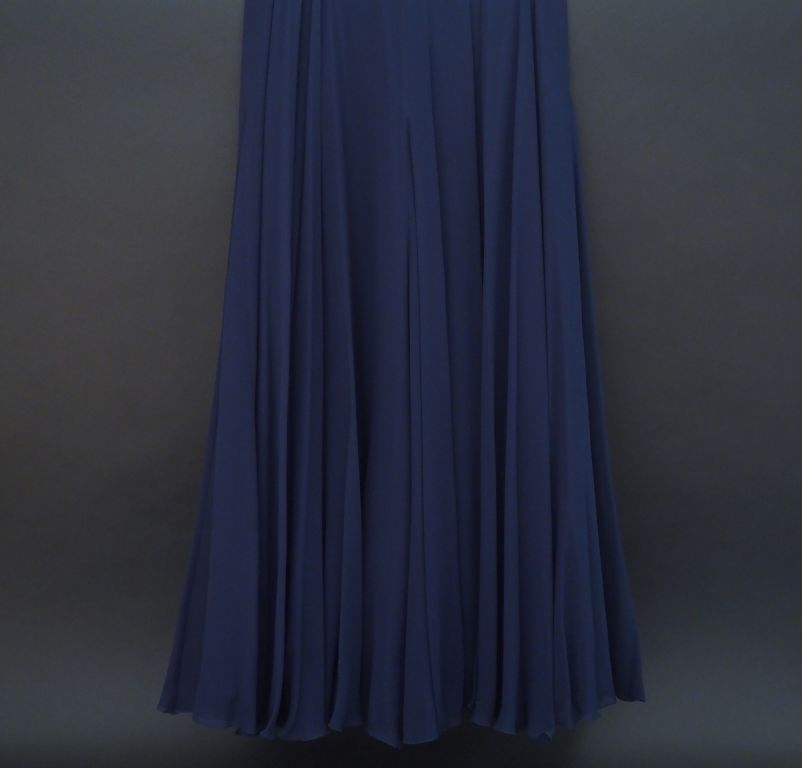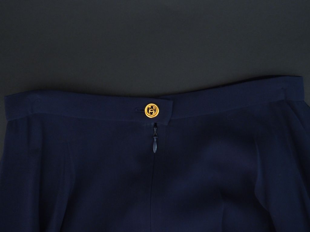 CHANEL Jupe longue bleu marine en soie. Fermeture éclair à l’arrière et bouton doré. Collection 93P. Modèle PO1441. Taille 36.
