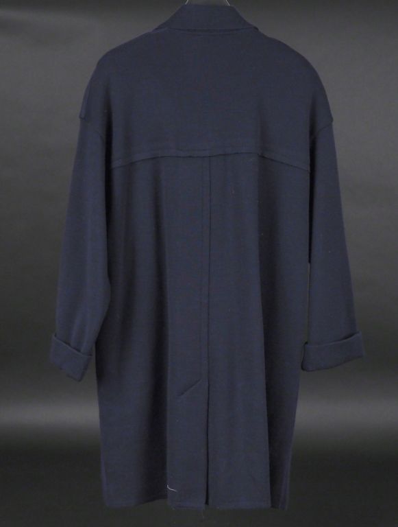 DEVERNOIS Manteau bleu en laine et acrylique. Fermeture par deux boutons et trois fermoirs. Deux poches plates.