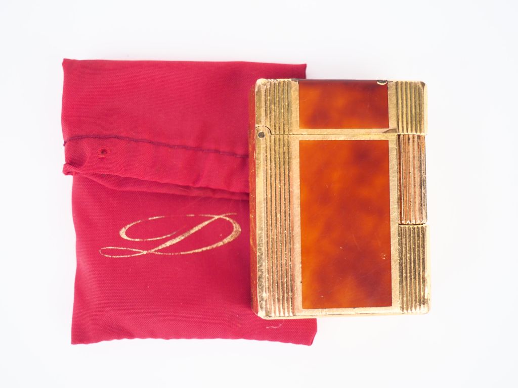 DUPONT, Briquet en laque de Chine et métal doré. Monogrammé. Signé et numéroté. (petits chocs)
