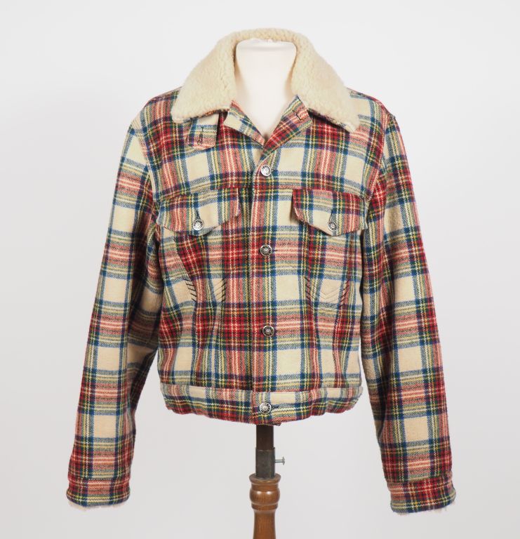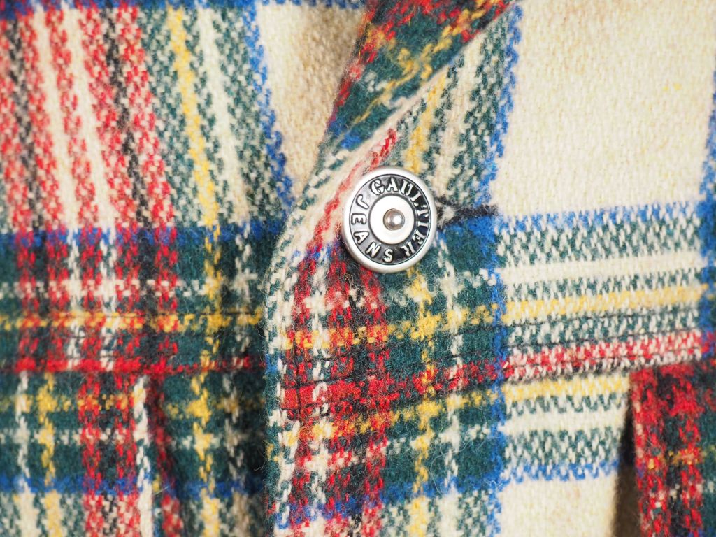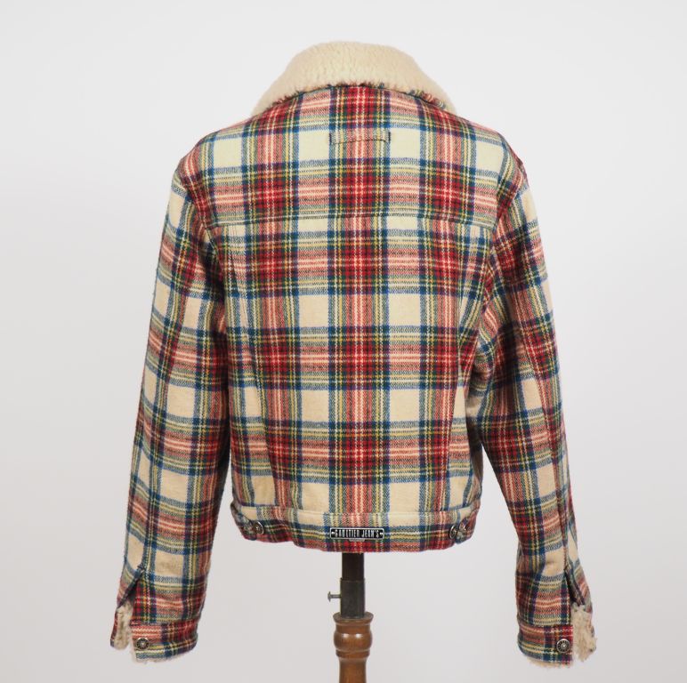 GAULTIER Jean's Manteau court en polyester (60%), laine (30%) et acrylic (10%), à décor écossais. Col à l'imitation de la peau de mouton. Deux poches à rabat à l'avant. Ouverture par boutons. Taille. L