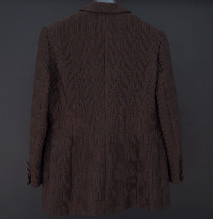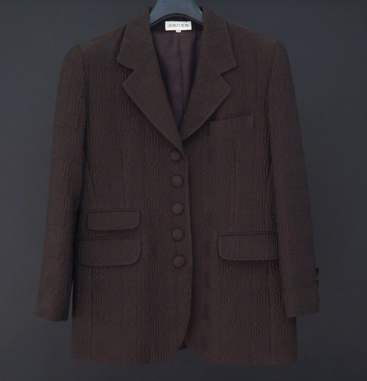 Georges RECH Veste marron en polyester (37%), acrylique (34%) et acetate (34%). Ouverture à l'avant par cinq boutons. Une poche plaquée et trois poches à rabat. Doublure en acetate et viscose. Taille. 44