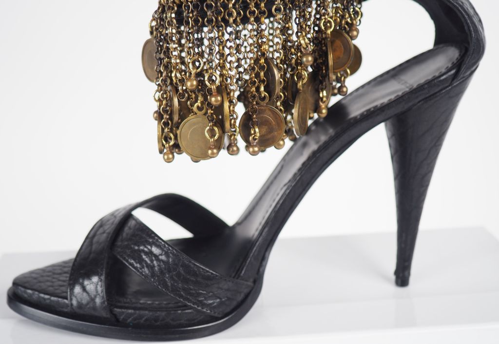 GIVENCHY Paire de sandale à brides et talons aiguilles. Attache à la cheville agrémentée de chainettes et pastilles en métal en pendeloque. Taille. 41 Etat neuf. Avec leurs housses et leur boite.