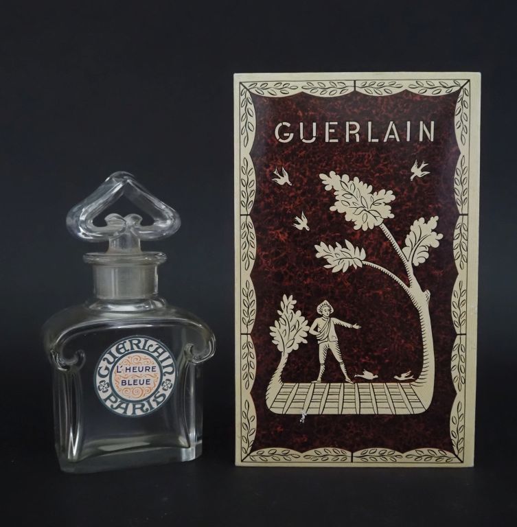 GUERLAIN L'heure bleu. Baccarat. Flacon vide. Guerlain, coffret ancien dimensions intérieurs : 7,5 cm / 13,5 cm.