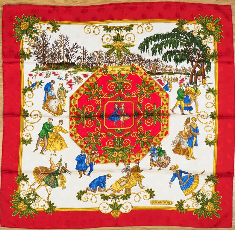 HERMES Carré en soie "Joies d'Hiver", dans sa boîte.
