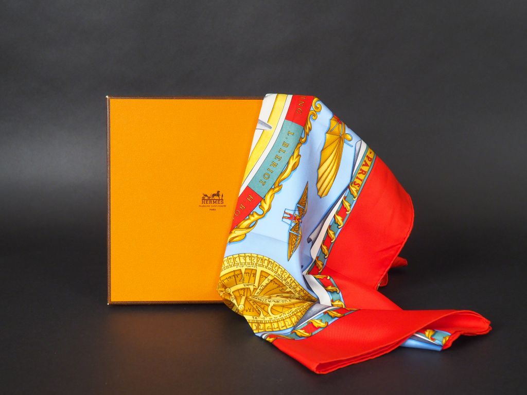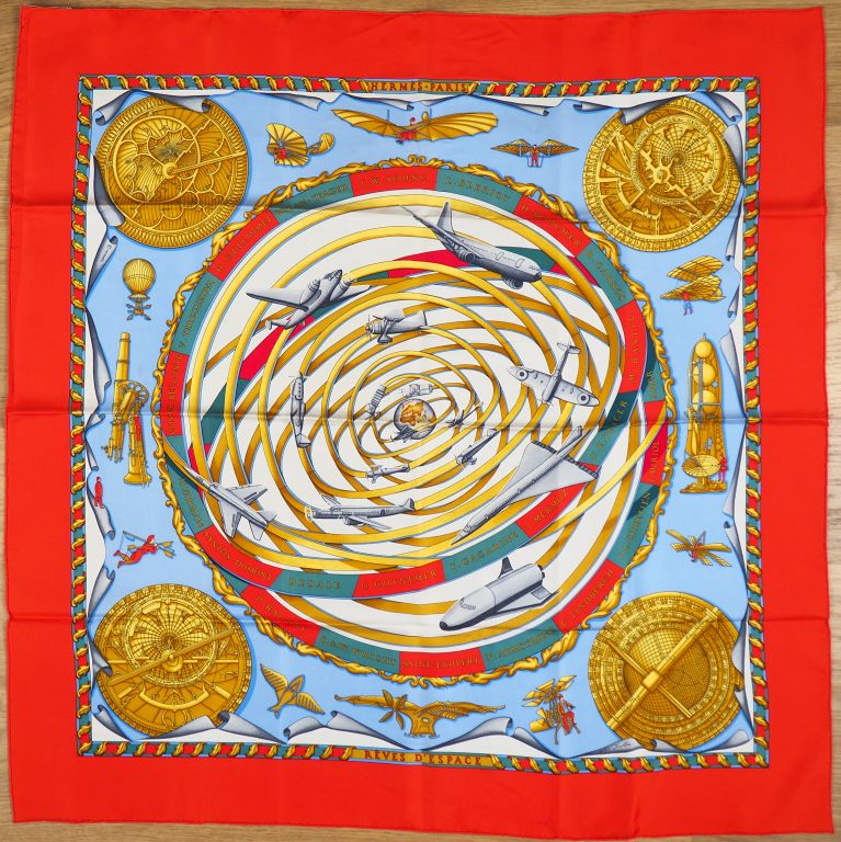 HERMES Carré en soie " Rêves d'espace", dans sa boîte. Signé M.Duchene.