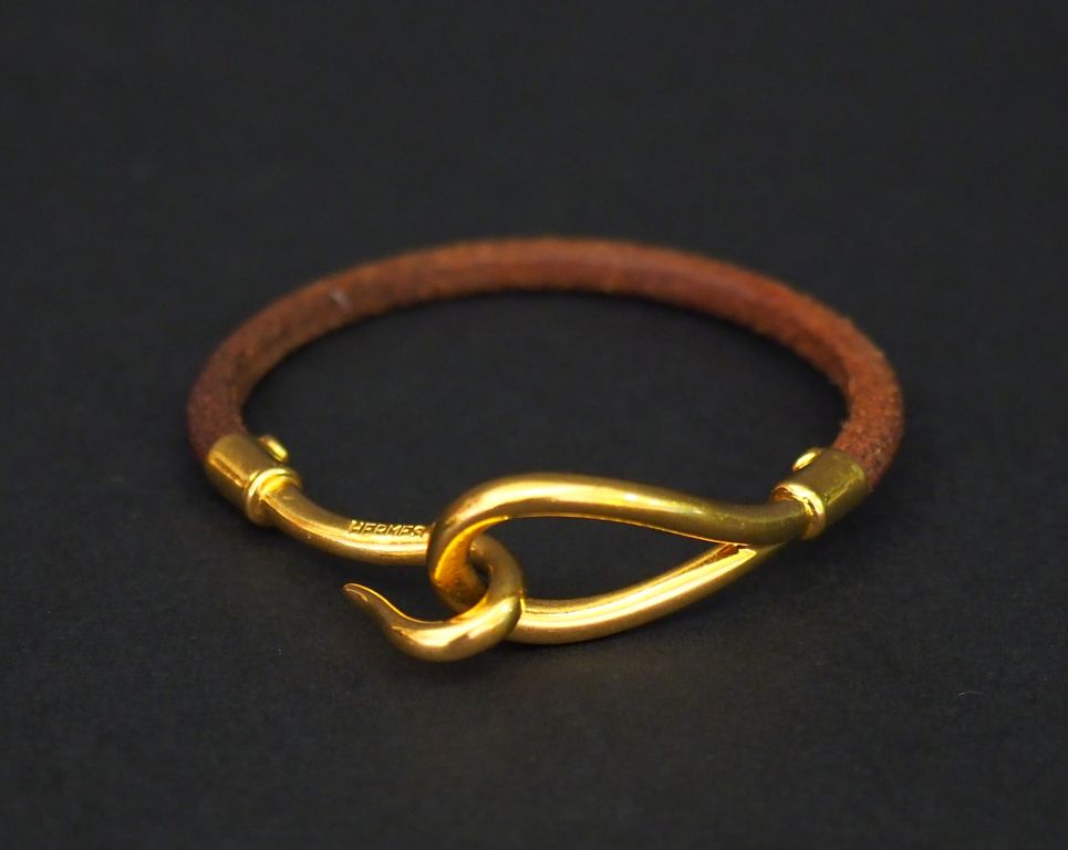 HERMES, Paris. Bracelet modèle Jumbo en cuir naturel. Fermoir en métal doré. Signé.