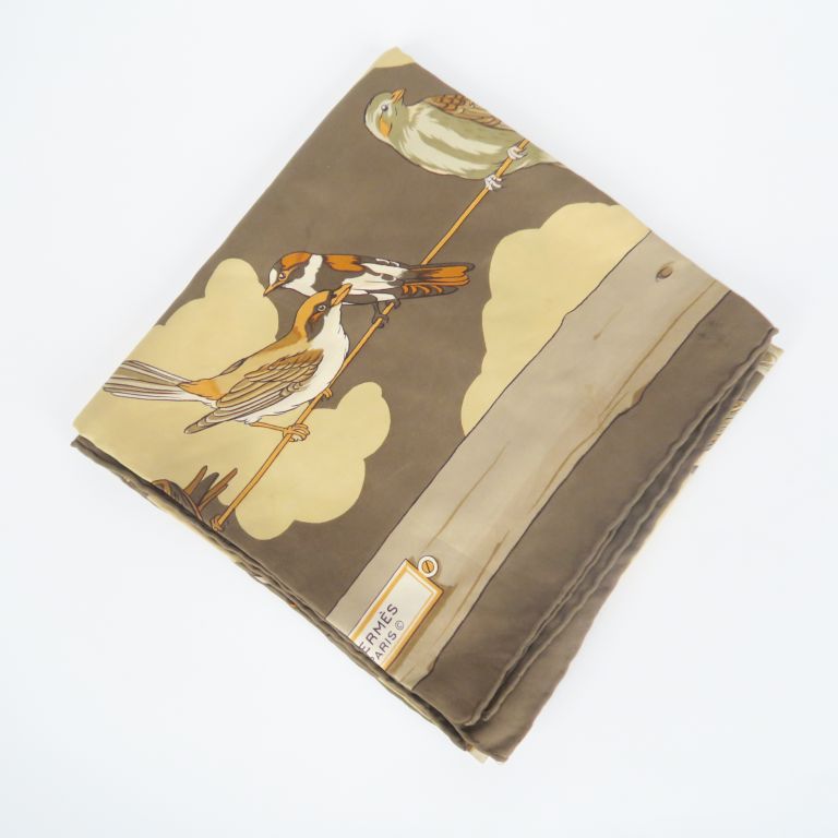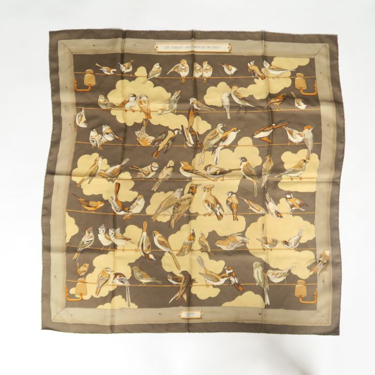 HERMES, Paris Carré de soie, modèle "Les oiseaux des champs et des bois". 90 x 90 cm Signé. (petites tâches)